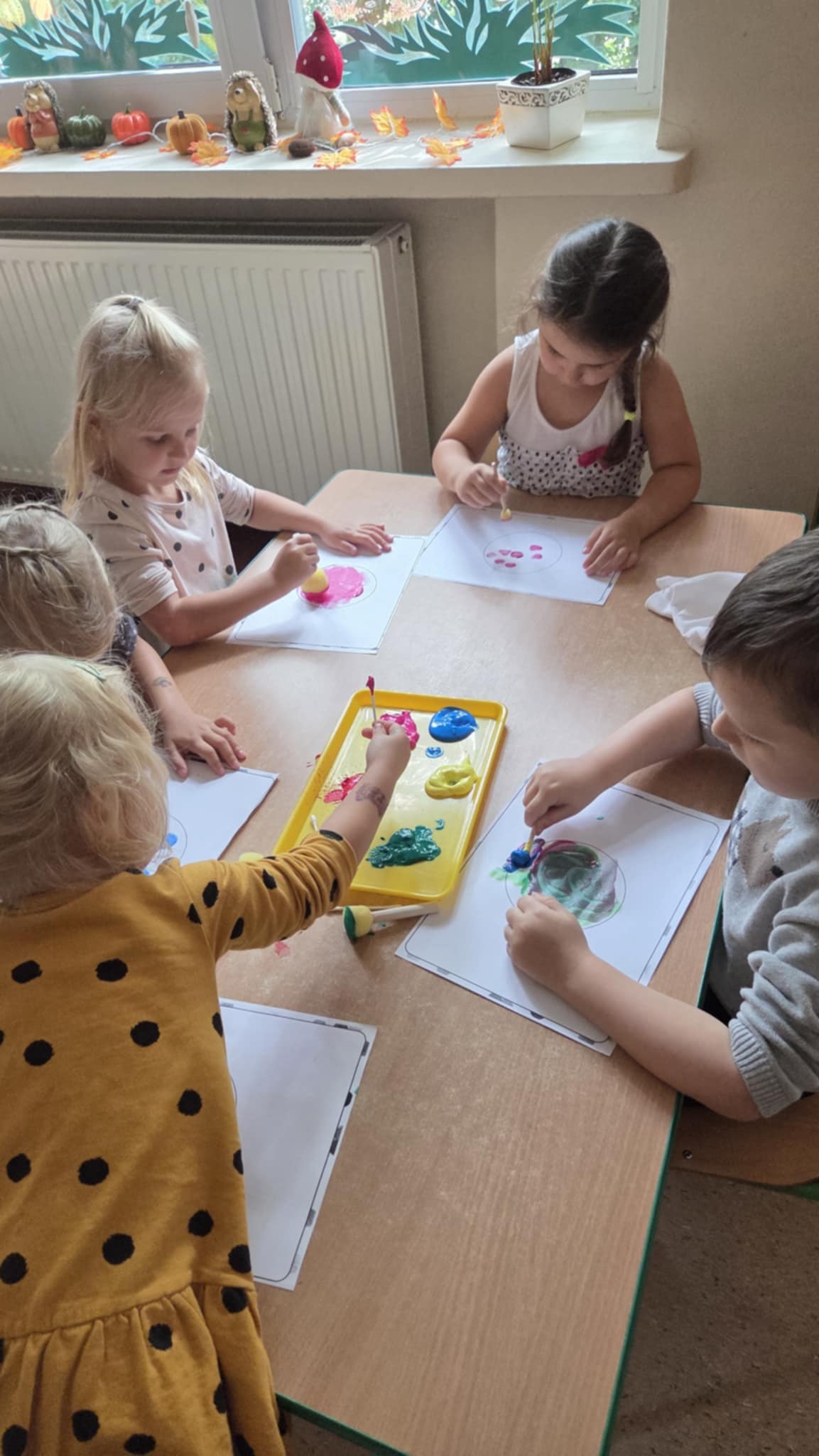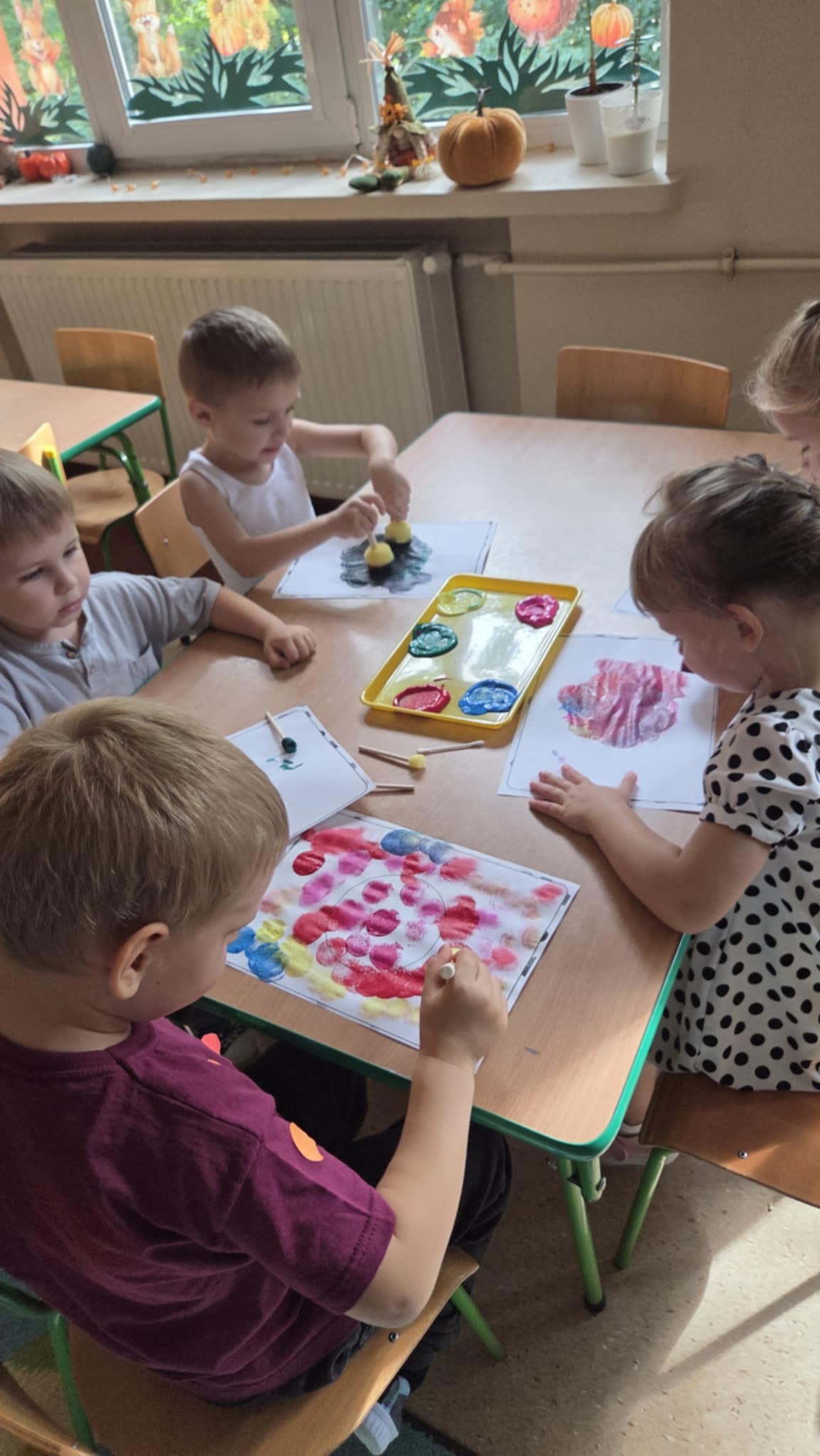 - wykonały własną, kolorową pracę plastyczną inspirowaną kropką.