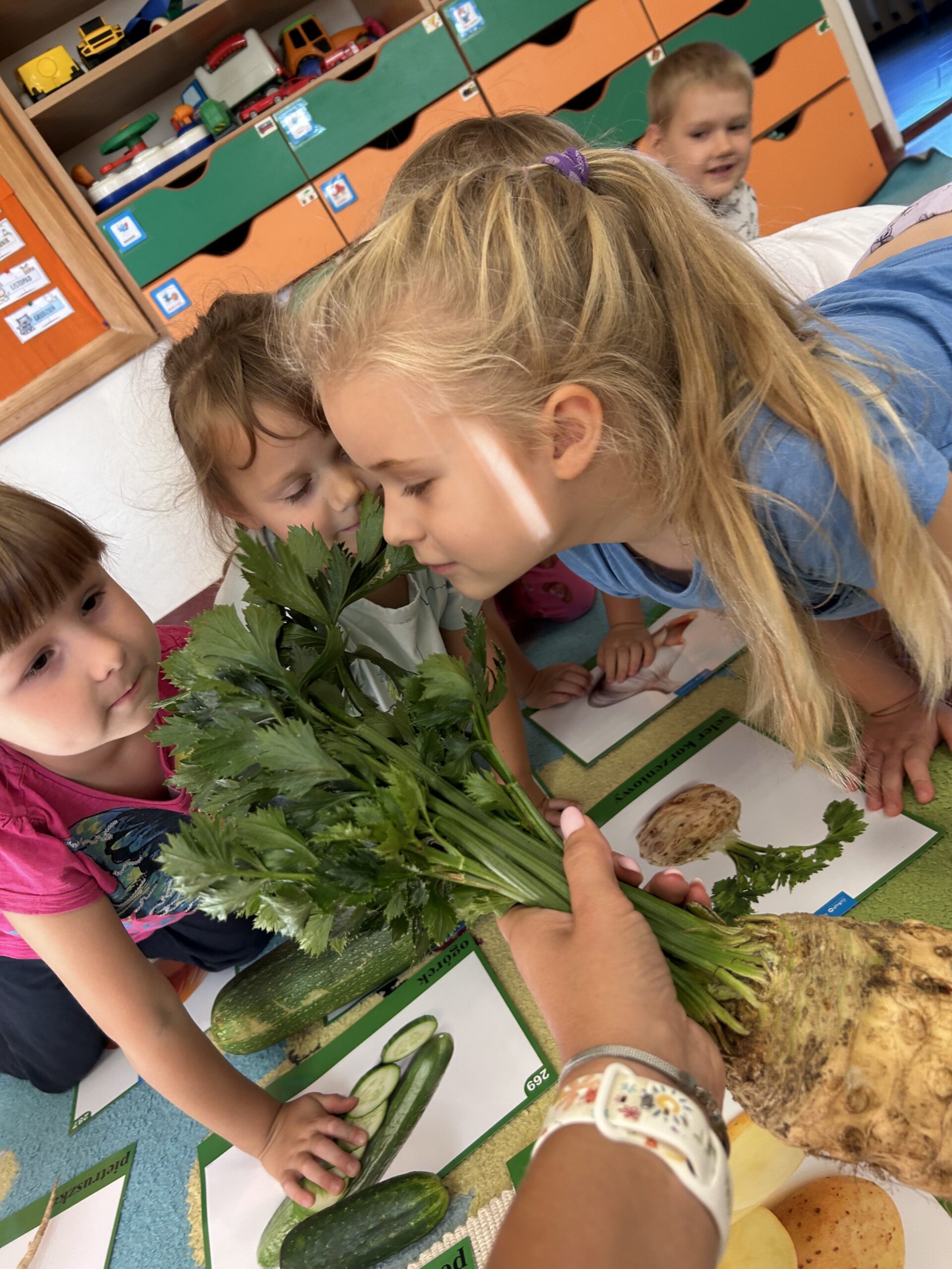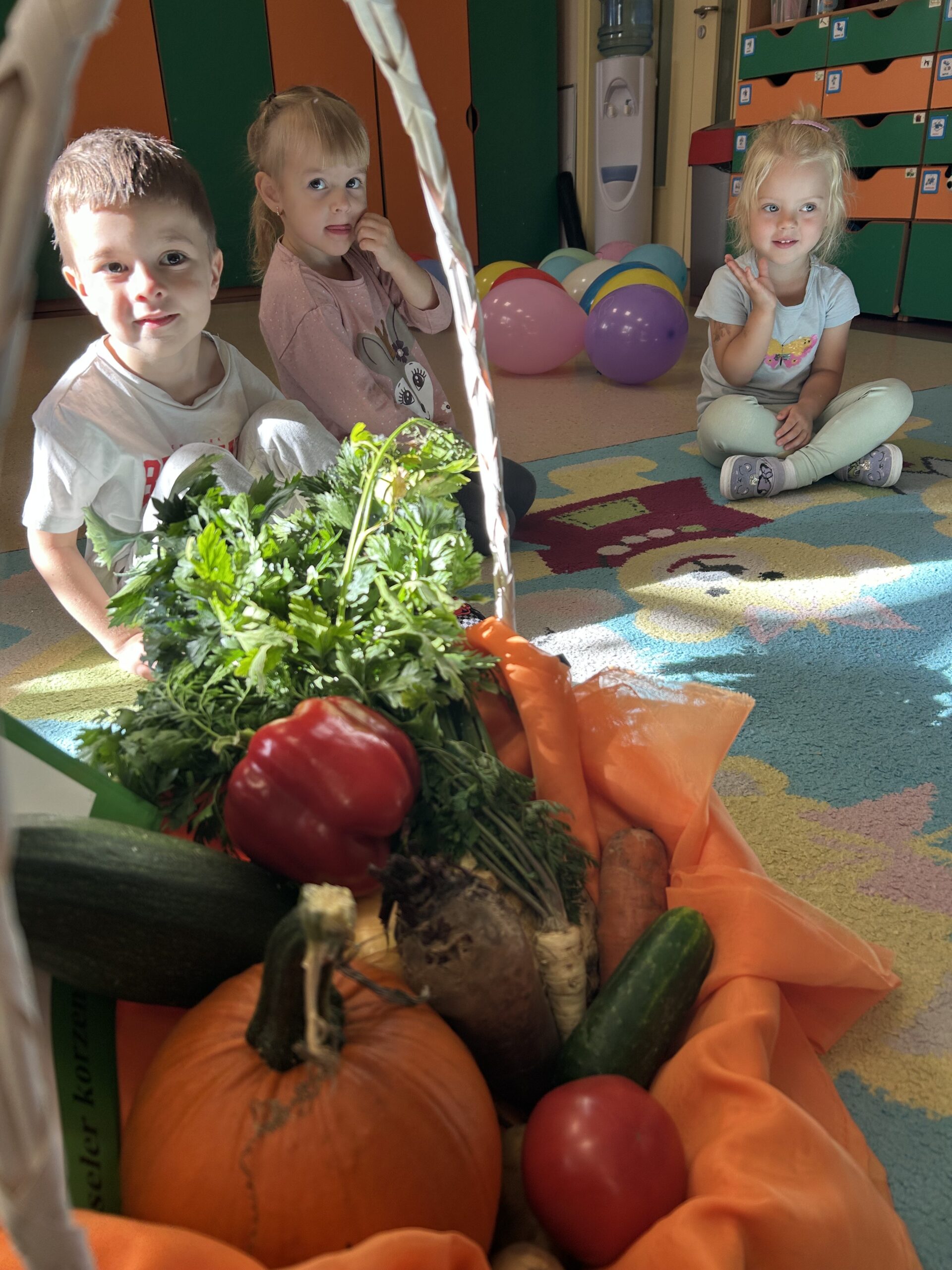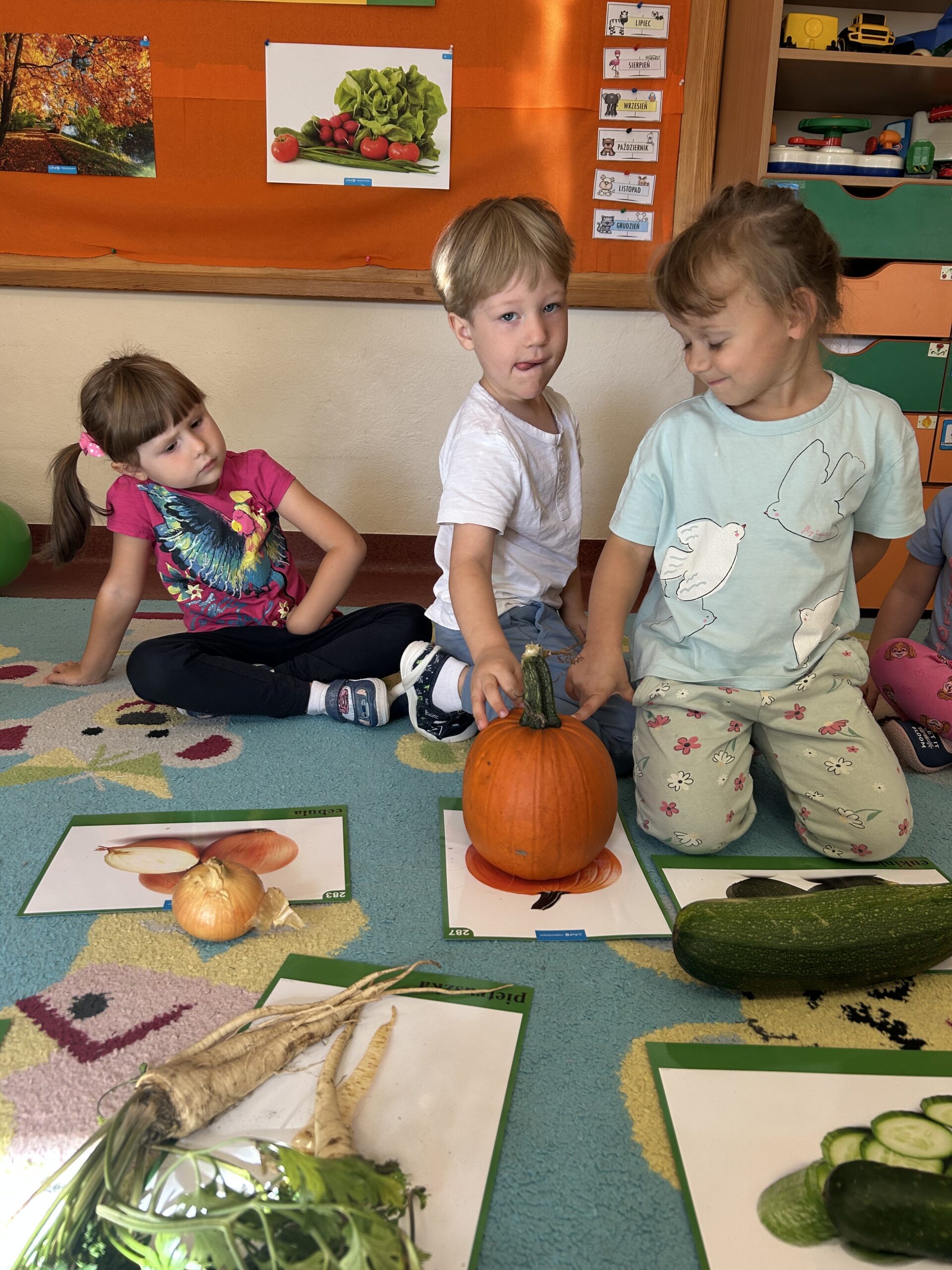 Okazało się, że warzywa mają nie tylko różne kształty i zapachy, ale też kryją w sobie wiele ciekawostek. Przedszkolaki z radością odkrywały, że dzięki takim zdrowym darom jesieni możemy być silni i zdrowi.