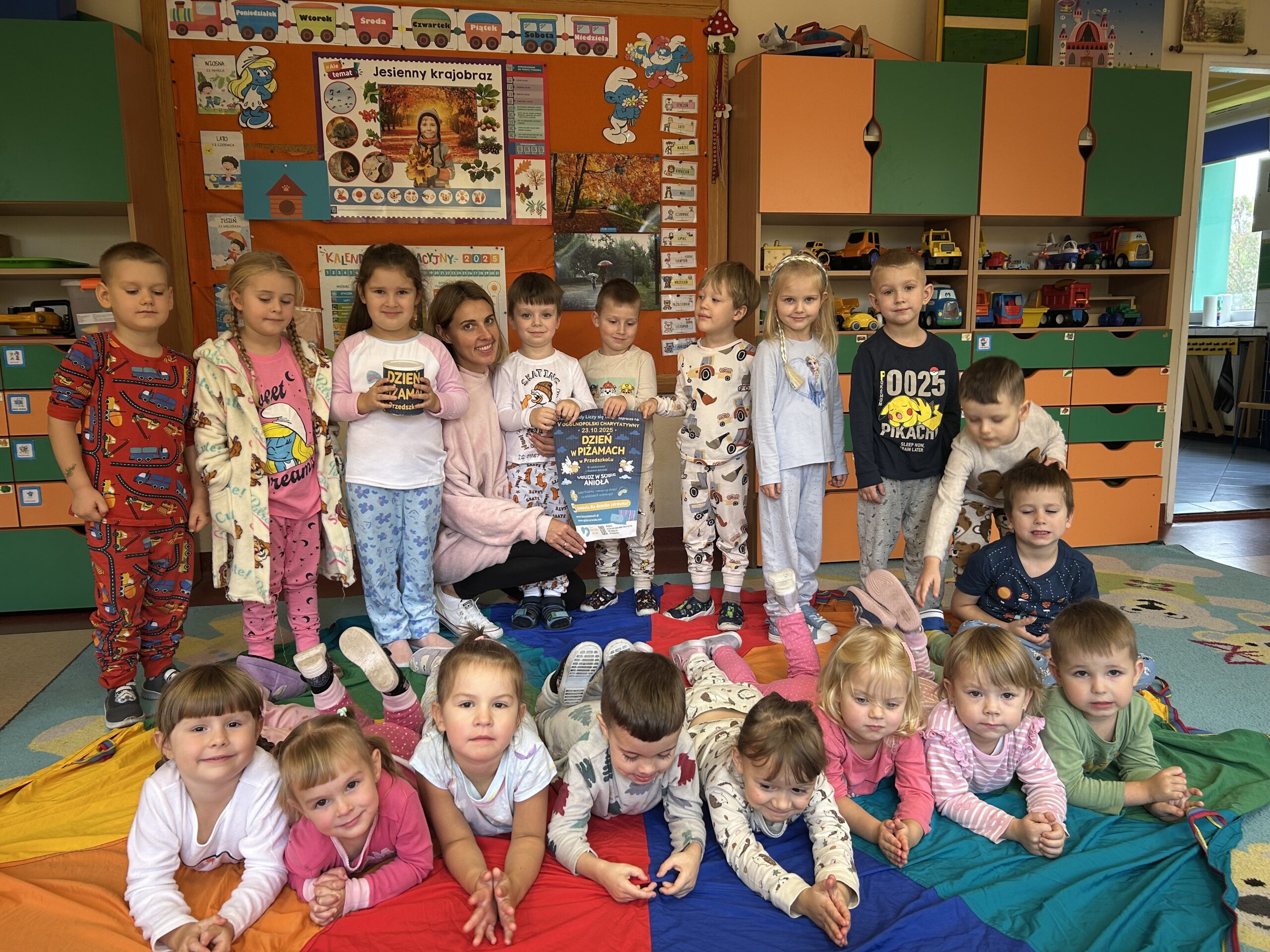 Dzieci przyszły do przedszkola w swoich ulubionych piżamkach, szlafrokach i kapciach. Wspólnie rozmawialiśmy o tym, dlaczego ten dzień jest tak ważny – to nie tylko zabawa, ale również gest wsparcia dla dzieci, które przebywają w szpitalach i na co dzień też spędzają czas w piżamach.