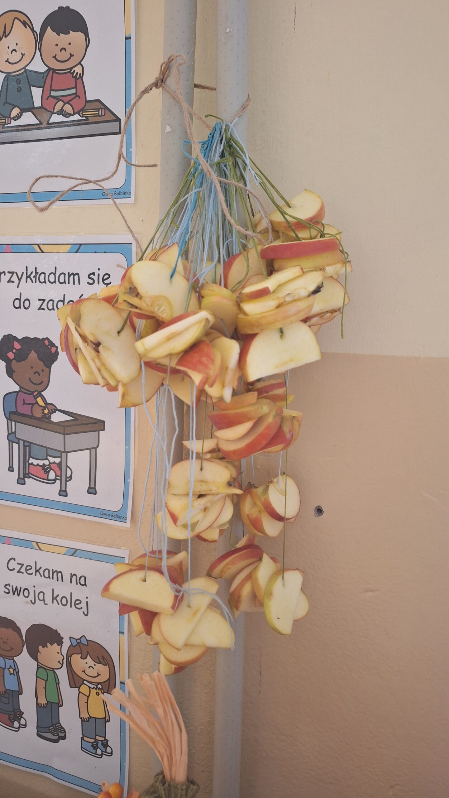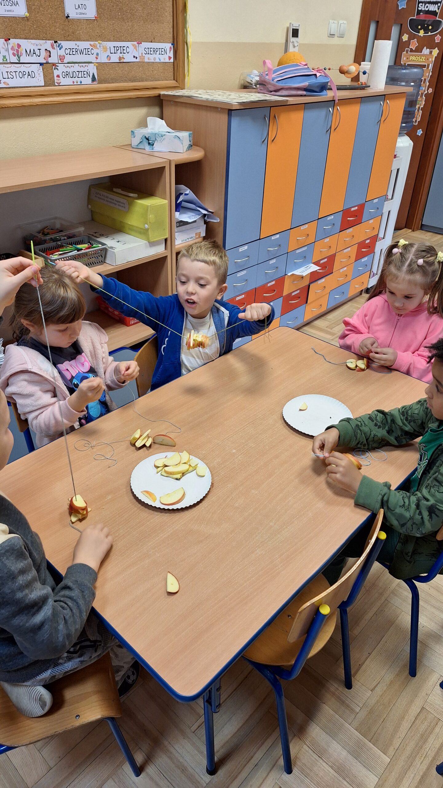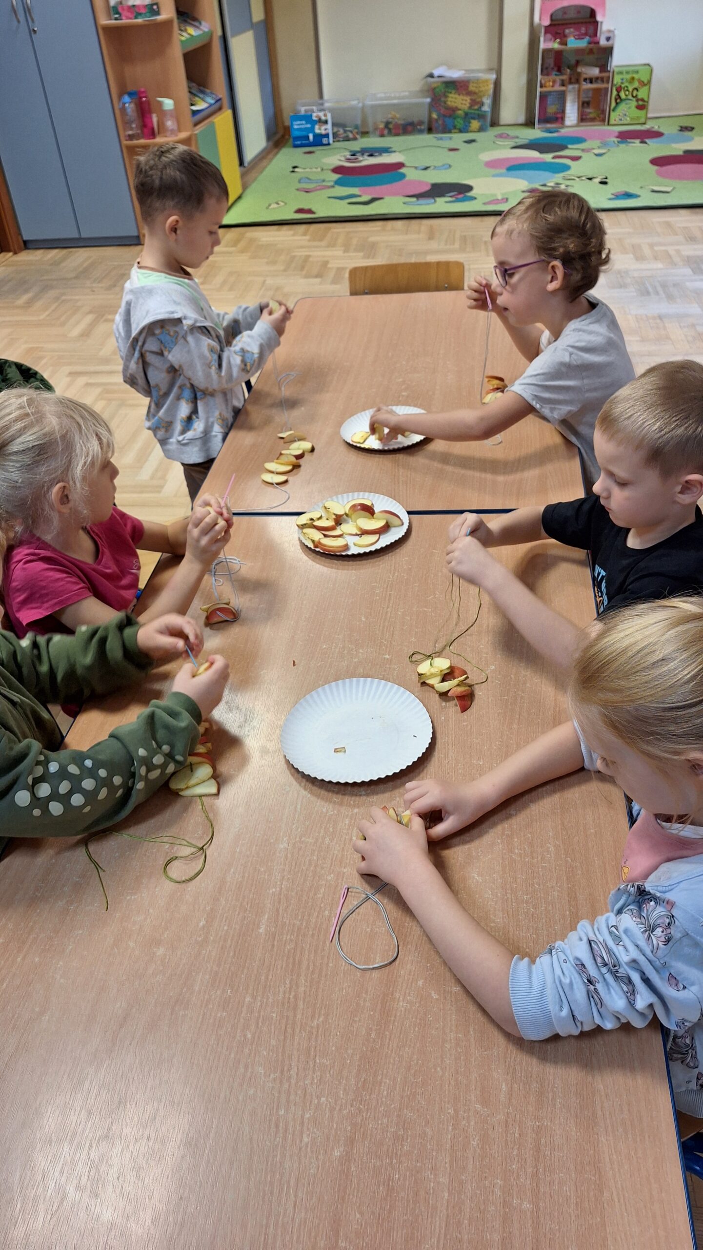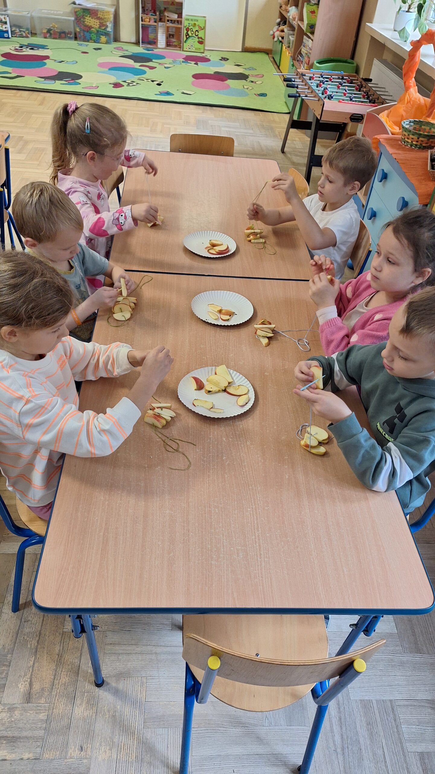 Dzieci z grupy Pszczółek z zapałem nawlekały jabłka na nitki, aby przygotować zapasy na zimę. Z tych pachnących owoców w czasie świąt powstanie pyszny, tradycyjny wigilijny kompot. 🕯️🎄